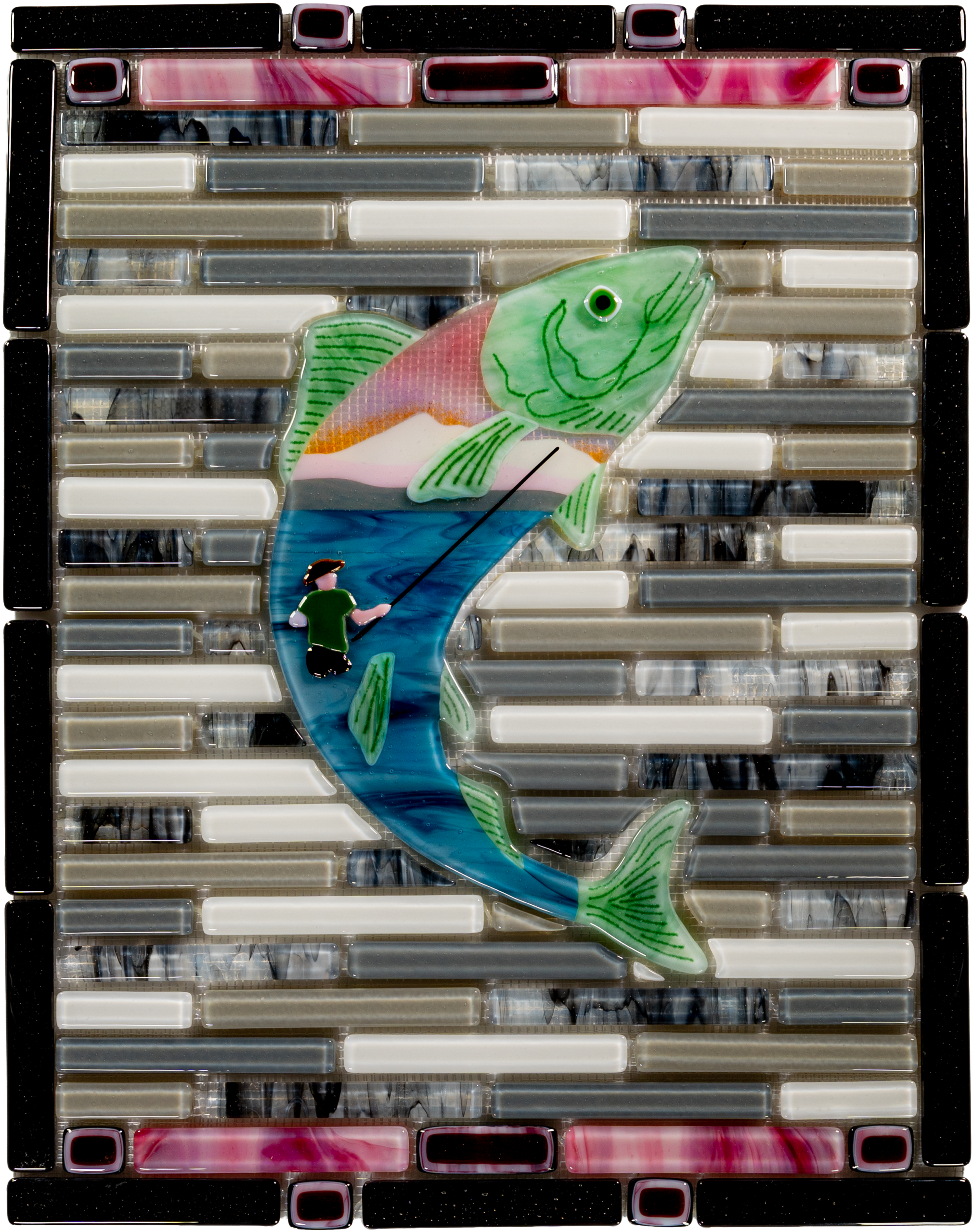 Welcome to Alaskan Glassy Waters. We specialize in creating custom Alaskana decorative glass art. In addition to creating original art work, we enjoy crafting unique windows, portholes, door panels, wall and bath tiles, kitchen backsplashes and more by working closely with individual customers to bring their dreams and/or visions to life! All pieces are 100% glass . . . no decals, inclusions, paints, enamels, etc.